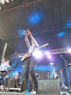 開場的第一首歌就是充滿愛的 Feel The Love,我知道自己其實不知道在嗨屁,但是還是跟著一起唱:wooo wooo~ wooo~ wooo~,還有:you you you you(三八貌)。Dan Whitfold 手彈機器人的控制版,空閒時間就會舉手揮啊揮啊。Tim Hoey 站在拎杯我的正前方啊幹彈吉他,看到他忘我的跳來跳去,但是又很害羞的樣子真的很可愛啊啊啊啊啊(好吵)。接唱新專輯的歌曲 Where I'm Going 裡面歌詞 yeah yeah yeah:Whitfold 會拿出手鼓舞我們跳起來,然後充滿八婆魂的我就會很乖的離地跳躍。